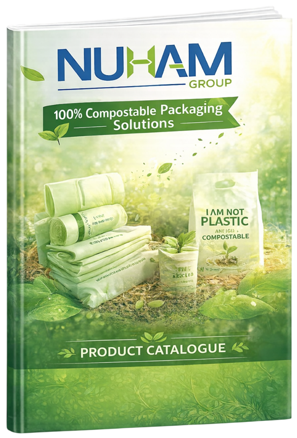 Our digital E-Catalogue offers a detailed overview of Nuham Group’s 100% compostable packaging solutions. Browse specifications, applications, sizes, and materials across trash bags, mailer bags, industrial liners, grow bags, and retail packaging, designed for global markets and diverse business requirements.